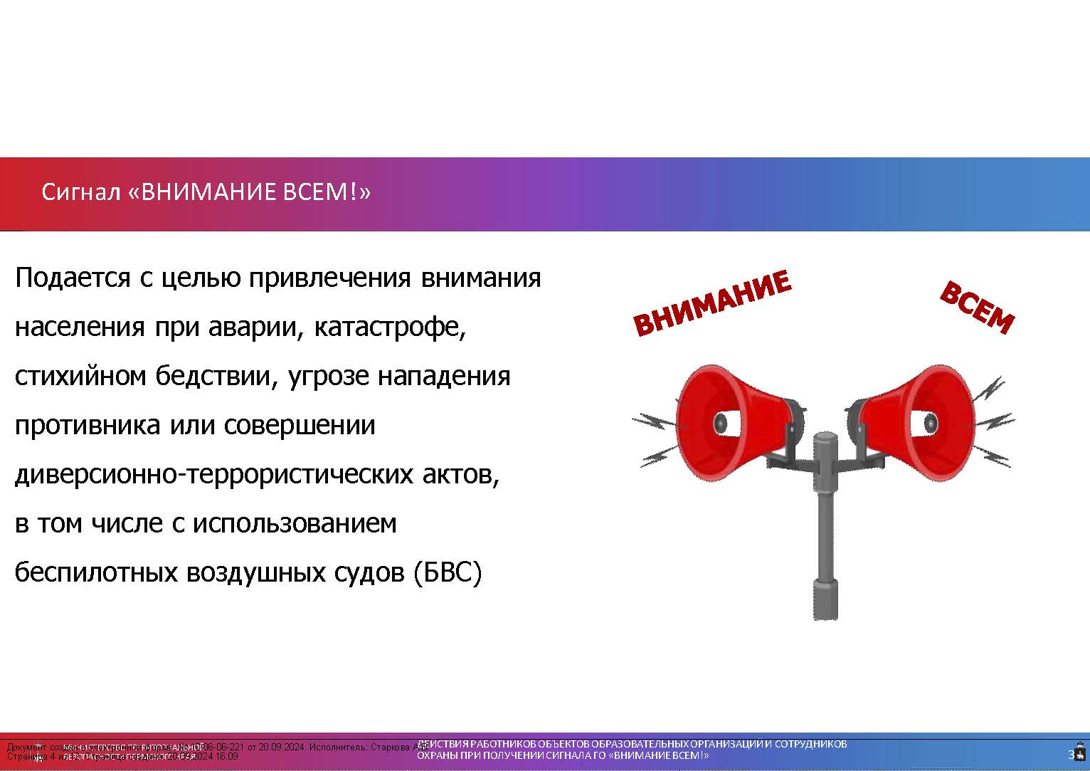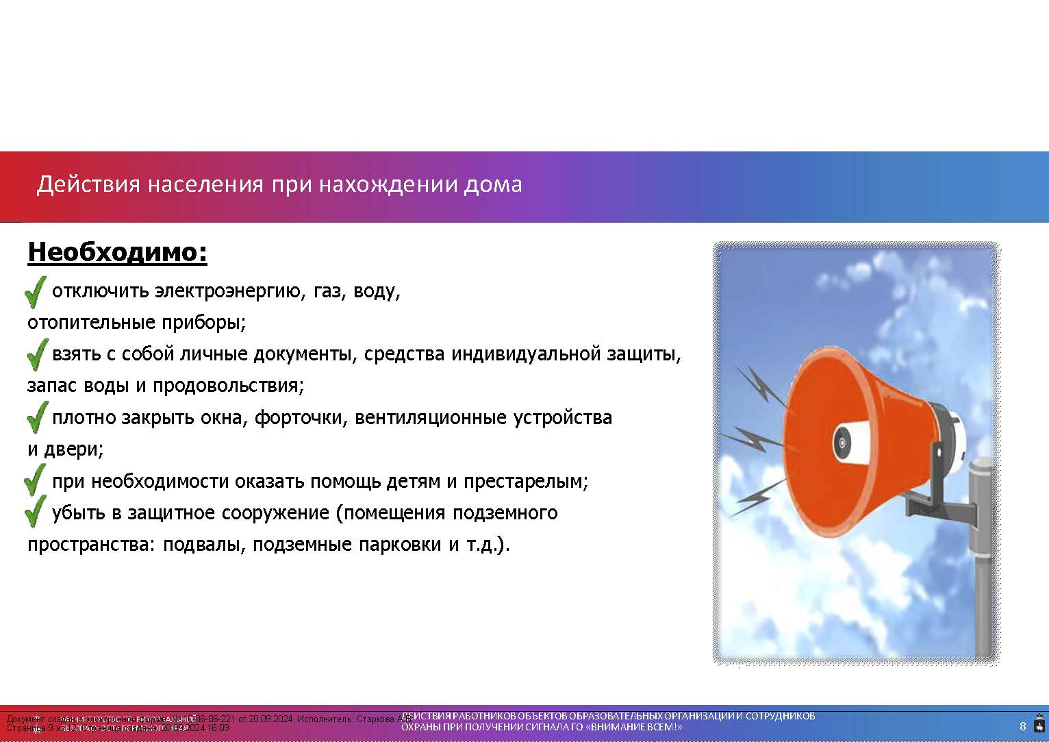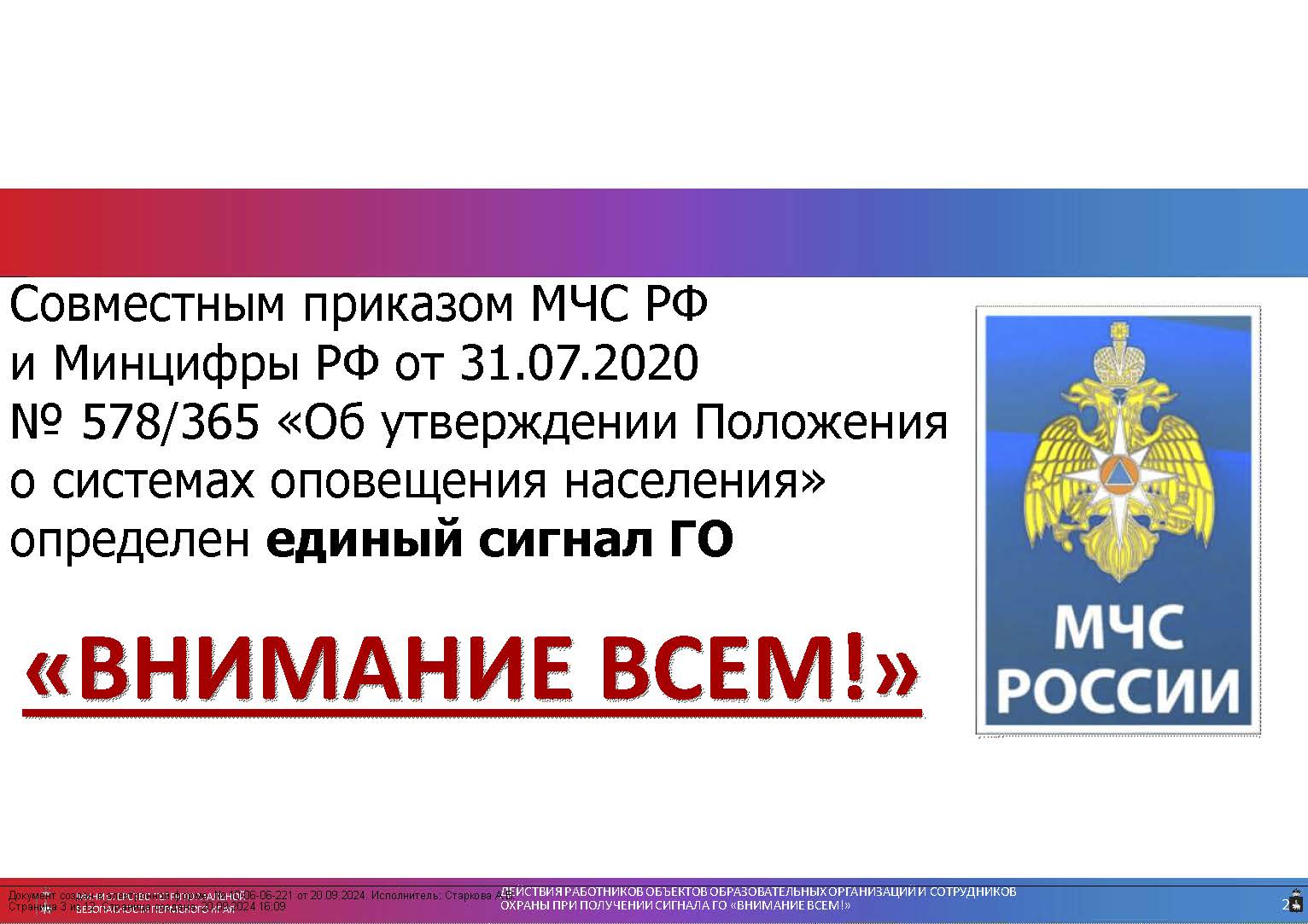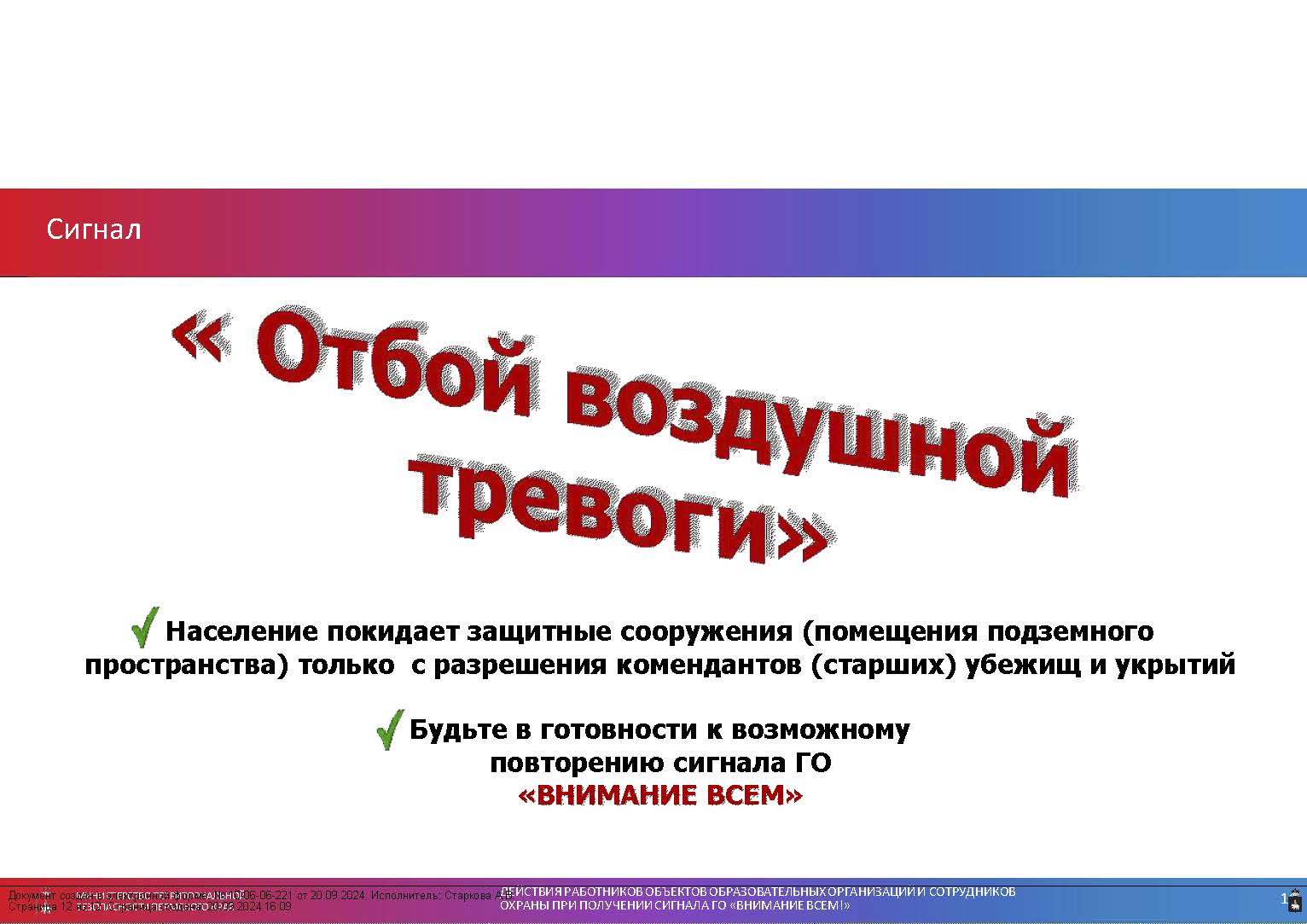«Действия при получении сигнала «Внимание всем!»»