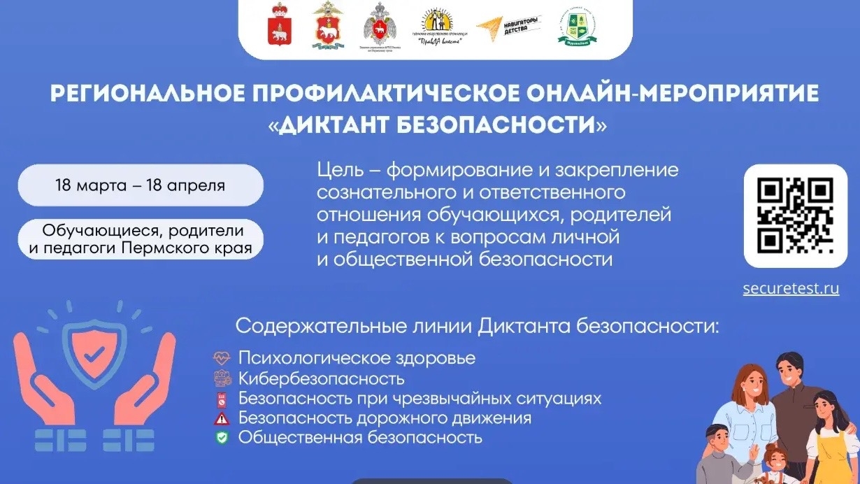 📌 С 18 марта по 18 апреля в Прикамье проводится Диктант безопасности, участие в котором могут принять не только молодые люди в возрасте от 14 лет до 21 года, но и родители и педагоги.