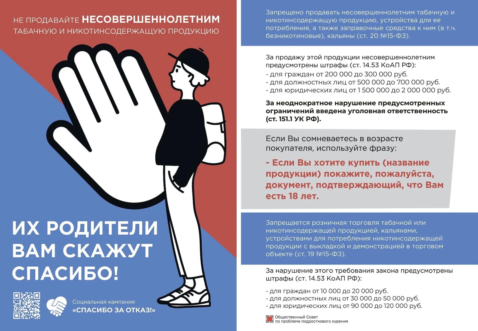 В Пермском крае запускается социальная кампания по борьбе с продажей несовершеннолетним табачной и никотинсодержащей продукции “Спасибо за отказ!” ⚡ Открыта «горячая линия» для приема сообщений от жителей о местах продажи сигарет и вейпов подросткам. Звоните: 8-800-234-29-26, пишите через сайт спасибозаотказ.рф (раздел “сообщите о нарушении”) или Телеграм-бот […]